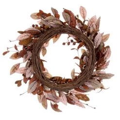Vickerman 22″ Artificial Light Brown Fall Berry And Wood Leaf Wreath