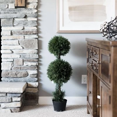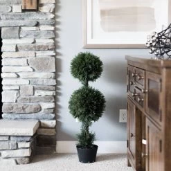 - Realistic Cedar Topiary Balls: This artificial plant features two realistic cedar topiary balls that will elevate the ambiance of your décor. Equipped with high-quality materials.
