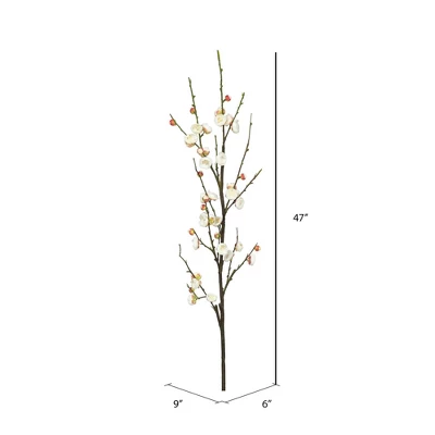 Add a pop of color and elegance to any arrangement with this pretty Artificial Plum Blossom Stem Cream by Vickerman. This maintenance-free stem can certainly become the focal point of the space it is in, irrespective of its placement. Bring home this fabulous new trend home to add a floral charm to any kind of decor.