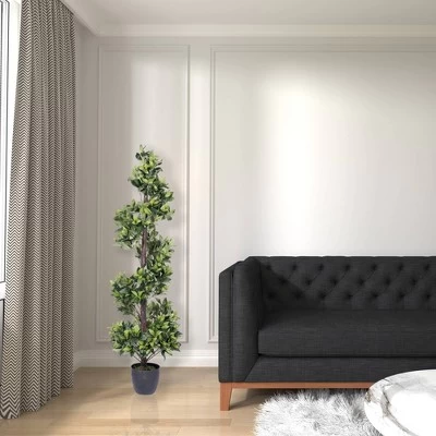 This 5′ Vickerman artificial spiral bay tree is the perfect addition to any decor. This spiral tree comes in a black poly insertable pot, perfect for holding your plant in the decorative container of your choice.