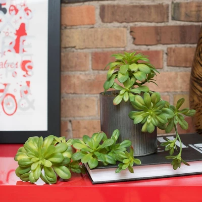 This Vickerman artificial green aeonium spray is the perfect addition to any natural décor. This spray features aeonium plant blooms of various sizes that hang down. It measures 11 inches long and includes 3 pieces per pack.