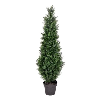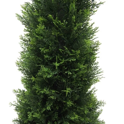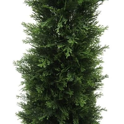 Introduce an eye-catching and low-maintenance accent to your home decor with the Cedar Faux Topiary Tree. Its natural green cedar leaves and the design of its trimmed foliage make it a sophisticated and modern option to incorporate some greenery to your indoor or outdoor living spaces. This artificial topiary tree is made of high-quality materials that are UV-resistant, making it a perfect choice for your front door, patio, or any other area. The potted design of this faux cedar plant makes it easy to display, and its realistic look will make it hard for anyone to tell it’s not a real plant. Ideal for both indoor and outdoor use, this UV-resistant topiary faux tree is perfect for those who love artificial topiaries, topiary trees, and faux cedar plants.
