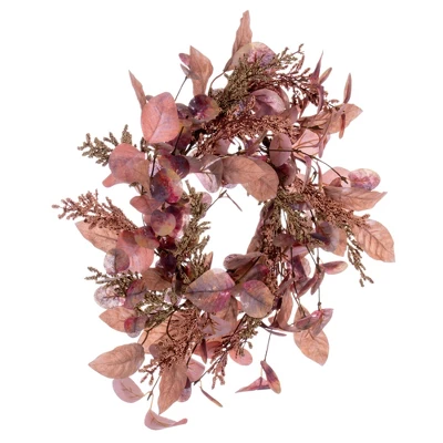 Vickerman 16″ Dusty Rose Artificial Fall Eucalyptus and Berry Wreath Candle Ring