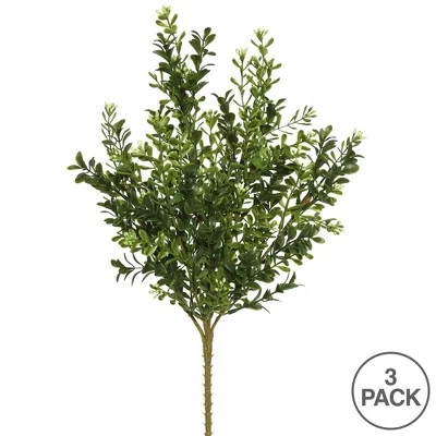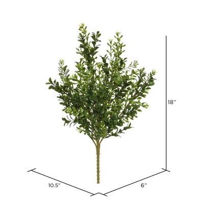 Vickerman 18″ Artificial Green Boxwood Bush. This Boxwood Bush is made of Polyester and Features 7 Branches with 103 Two-tone Green Leaves. Includes 3 Pieces per Pack.