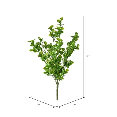 Vickerman 18″ Artificial Green Boxwood Bush, UV Coated. This bush is protected with a UV coating which makes it a great addition to indoor and outdoor décor.