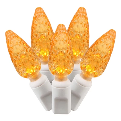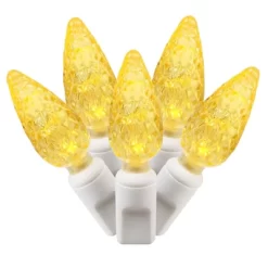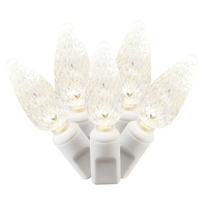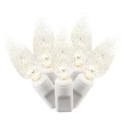 Vickerman 34′ Single Mold C6 LED Christmas light set. Add some sparkle to your Holidays with this light strand, featuring 100 single mold C6 LED lights on White wire with 4″ spacing between bulbs and has the ability to connect to other sets.