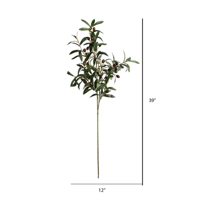 Vickerman 39″ Artificial Green Olive Fruit Spray. Add variety and texture with this beautiful Olive Fruit spray, featuring delicate realistic olive accents and rich green foliage. It makes a wonderful addition to any arrangement. Includes 3 sprays per pack.