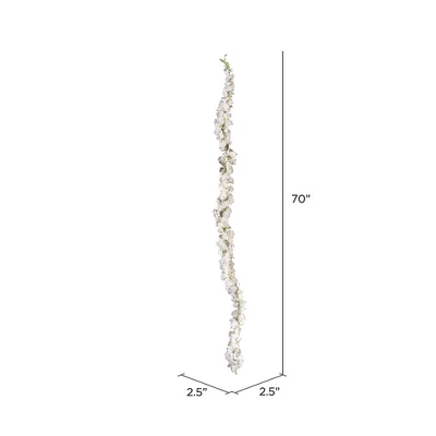 - This White Wisteria vine will add a welcome feel to any room. Measures 70″ long x 2.5″ wide x 2.5″ deep