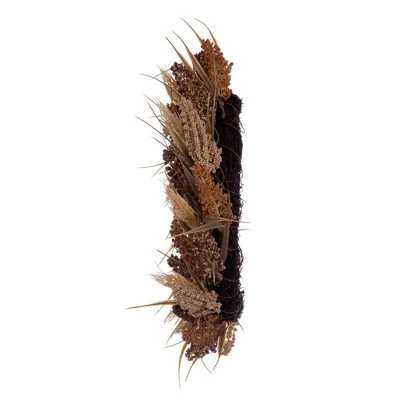 Vickerman Artificial 20″ Brown Ivory Corn Wreath. Features brown grass accents and a circular grapevine base.