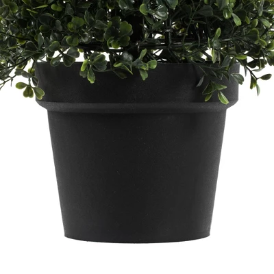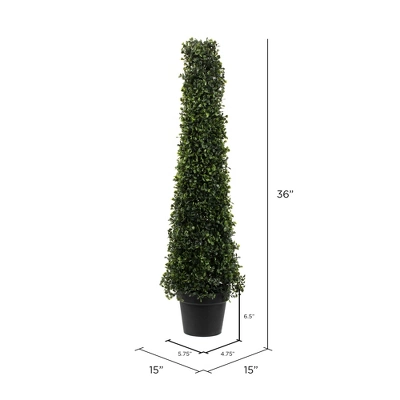 Vickerman Potted Artificial Green Boxwood Cone. Featuring deep green foliage, and is UV treated for outdoor use. Easy to care for, maintenance free, an occasional light dusting is all that is needed.