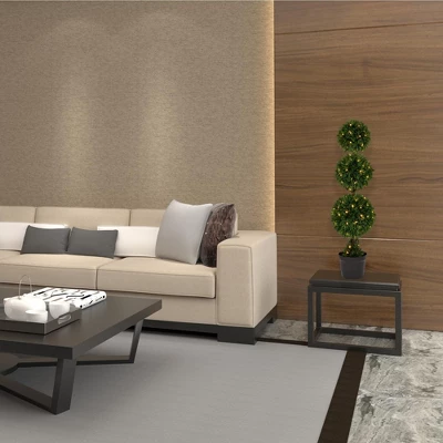 Vickerman Artificial Potted Green Ball Cedar Topiary. Featuring deep green foliage, a black plastic insertable pot, and is UV treated for outdoor use. Easy to care for, maintenance free, an occasional light dusting is all that is needed.