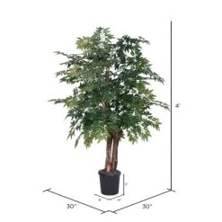 Vickerman Artificial Ming Aralia bush featuring detailed leaves that vary in shades of green. The real-wood trunks differ in width to give a realistic, natural fullness.