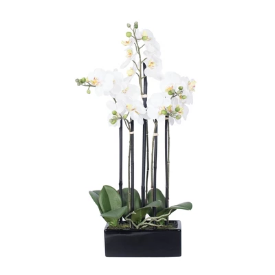 Vickerman Artificial Orchid. This beautiful Orchid Features 5 Stems and comes Potted in a decorative Ceramic Container.