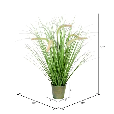 Vickerman Artificial Potted Green Grass Featuring Cattails. ThIs Beautiful Grass Plant is made of Durable PVC, has a Perfect Blend of Grass and Cattails for a Natural Look, it comes fixed in a Decorative Iron Pot.