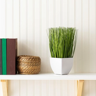 Vickerman Artificial Potted Grass. Add depth and elegance to any natural Décor with this Beautiful Grass Arrangement. It comes fixed in a Classic White Pot.