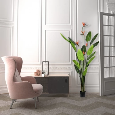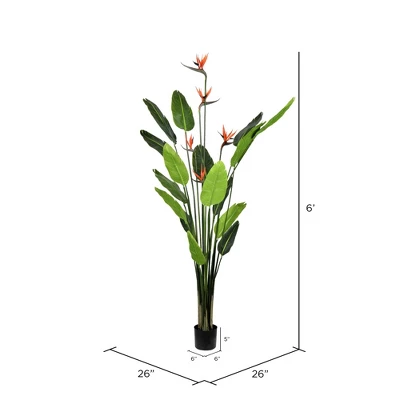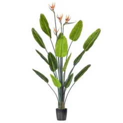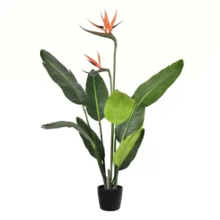 Vickerman Artificial Potted Bird of Paradise Palm Tree Featuring rich green Leaves and Beautiful Flowers, It Comes fixed In A Black Insertable Pot, Making This Plant Easy To Place In The Decorative Container Of Your Choice.