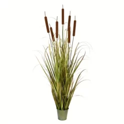 Vickerman Artificial Potted Green Grass Featuring Cattail accents. ThIs Beautiful Grass Plant is made of Durable PVC, has a Perfect Blend of Grass and Cattails for a Natural Look, it comes fixed in a Decorative Iron Pot.