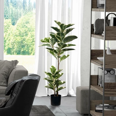 Vickerman Artificial Potted Oak Tree Real Touch Leaves. This artificial tree contains beautiful green and white variegated leaves that are real to the touch. Easy to care for, maintenance free, an occasional light dusting is all that is needed.