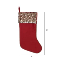 Vickerman 19″ Chevron Sequin Stocking. Fabric stocking with hand-sewn sequins on the cuff. Inner lined, with a loop for hanging.