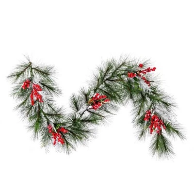 Vickerman Frosted Artificial Christmas Collection with PE/Hardneedle Tips and Decorated with Red Berries and Green and Frosted Foliage