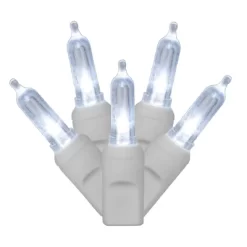 Vickerman 34′ Single Mold Italian LED Christmas light set. Add some sparkle to your Holidays with this light strand, featuring 100 single mold Italian LED lights on White wire with 4″ spacing between bulbs and has the ability to connect to other sets.