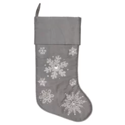 Vickerman Snowflake Christmas Textile Collection. Fabric with hand-beaded embellishments and silver rope edging.